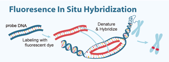 熒光原位雜交技術(shù)(fluorescence in situ hybridization),簡稱FISH。 是采用熒光標(biāo)記的DNA探針,利用探針與被檢測樣本DNA堿基對的互補性,在探針與樣本的DNA雜交后,通過熒光顯微鏡檢測熒光信號而得出結(jié)果,從而檢測細(xì)胞,組織樣本中的染色體或基因異常。